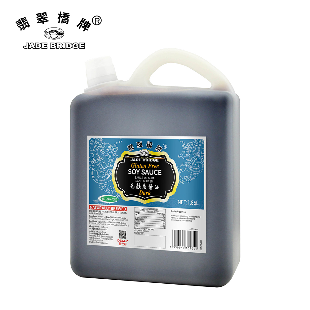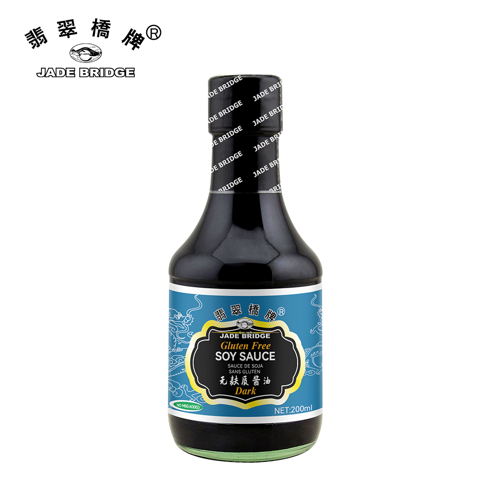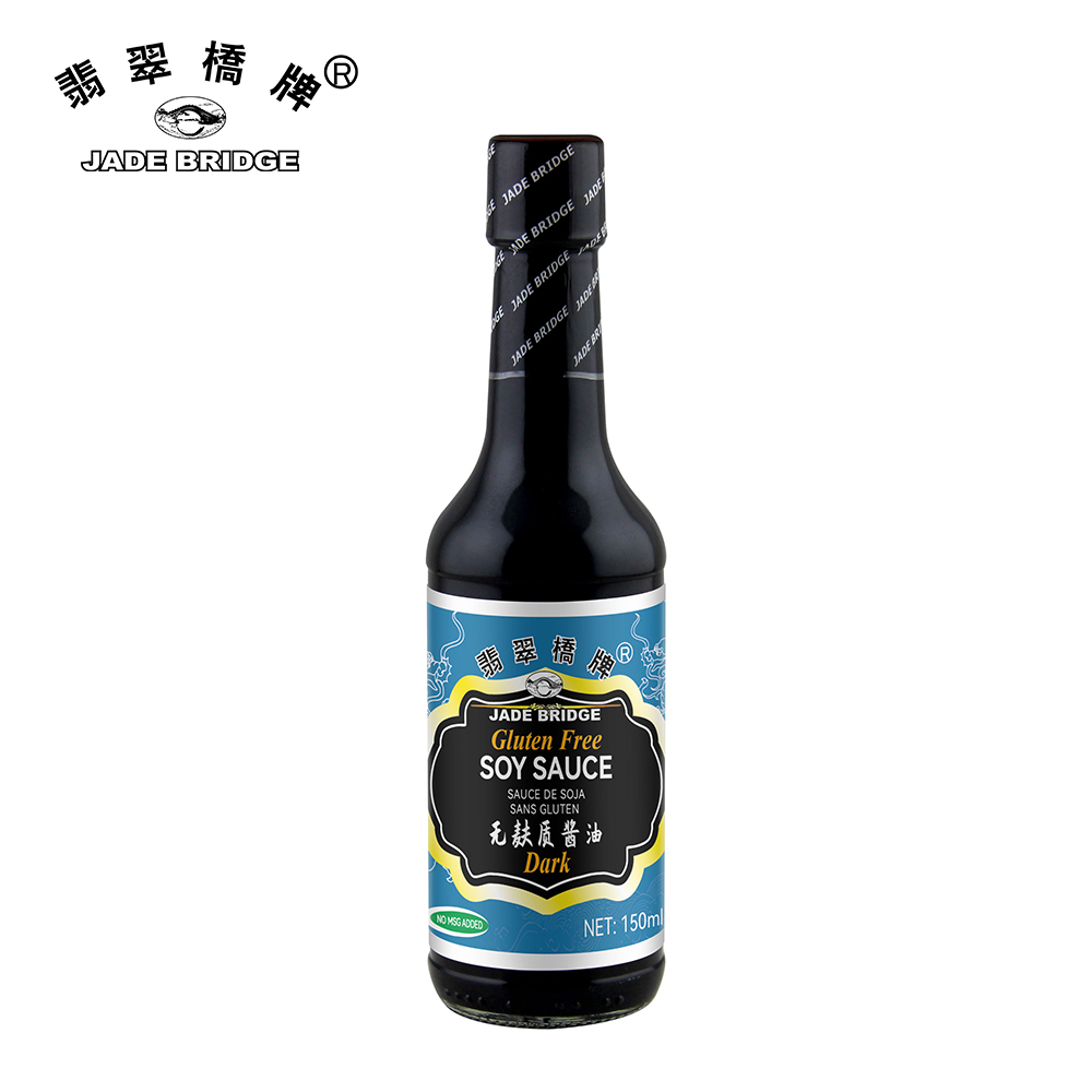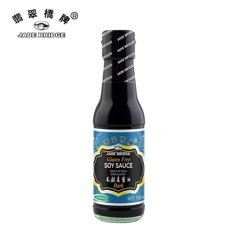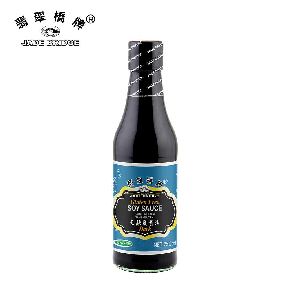 Jade Bridge introduces gluten free dark soy sauce to best serve your needs. Jade Bridge gluten free dark soy sauce is a premium product made with non-genetically modified whole beans. You can expect the same rich savory flavor and aroma from the leader in authentic Chinese sauces – but without the gluten and no preservative added.