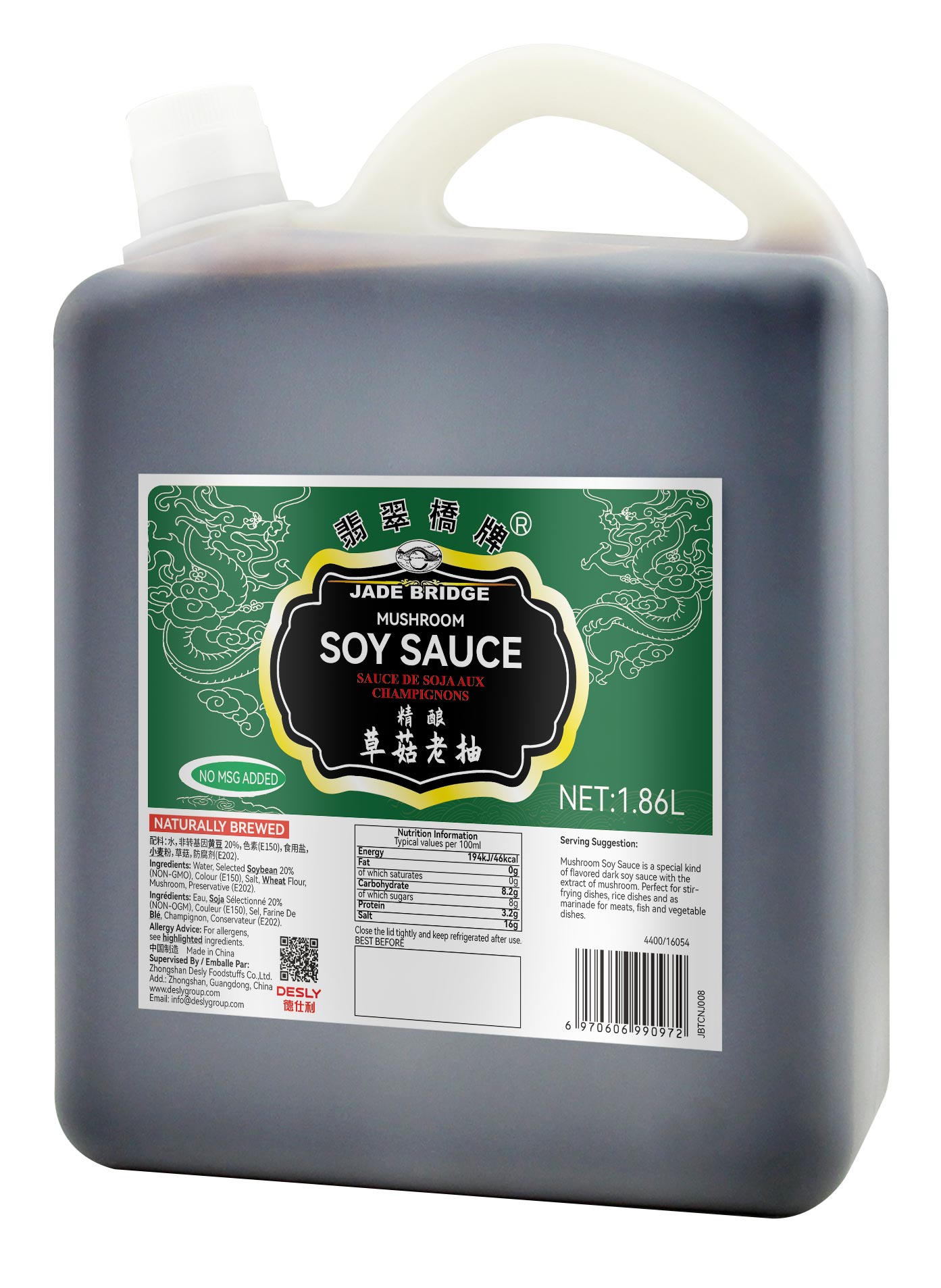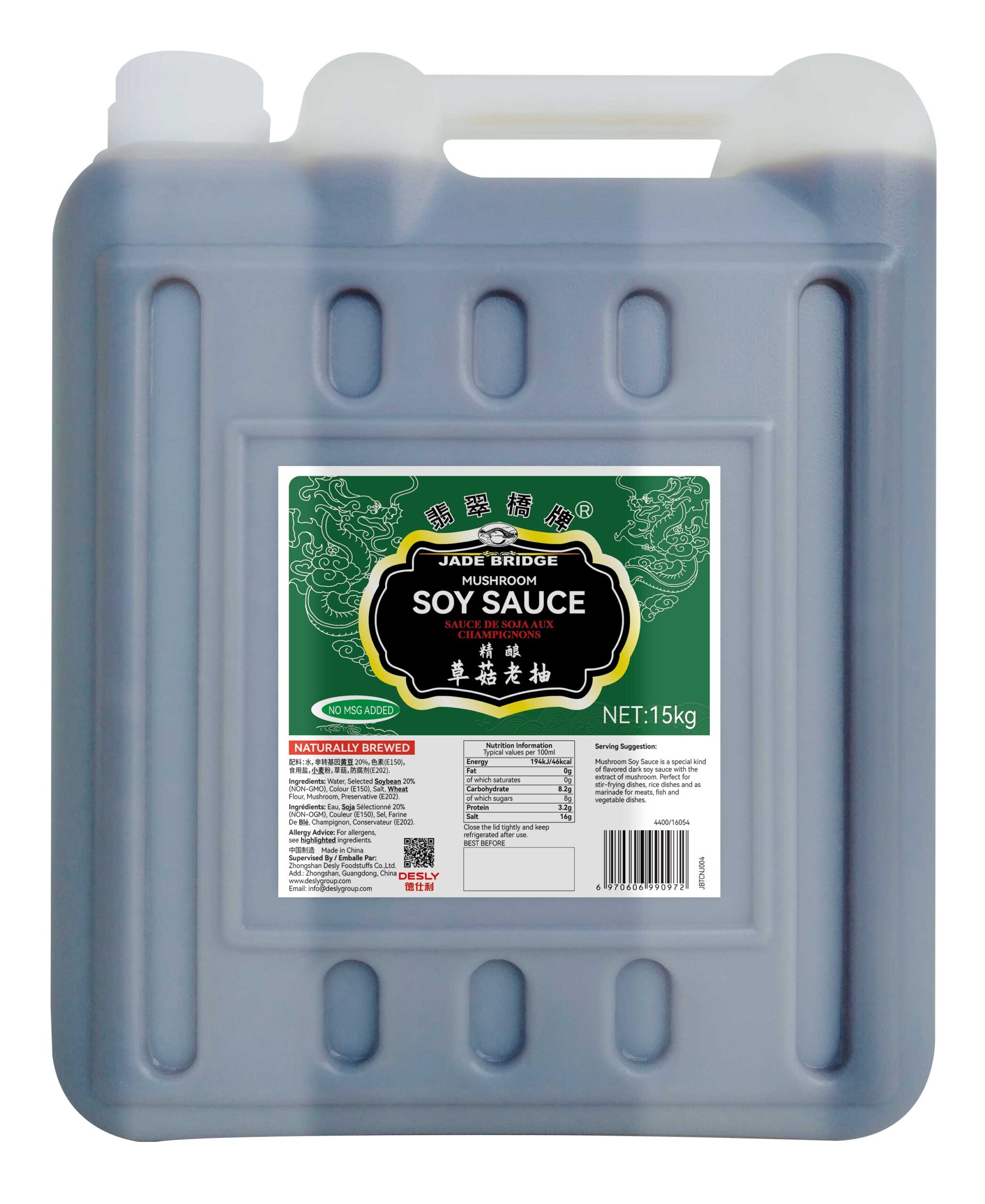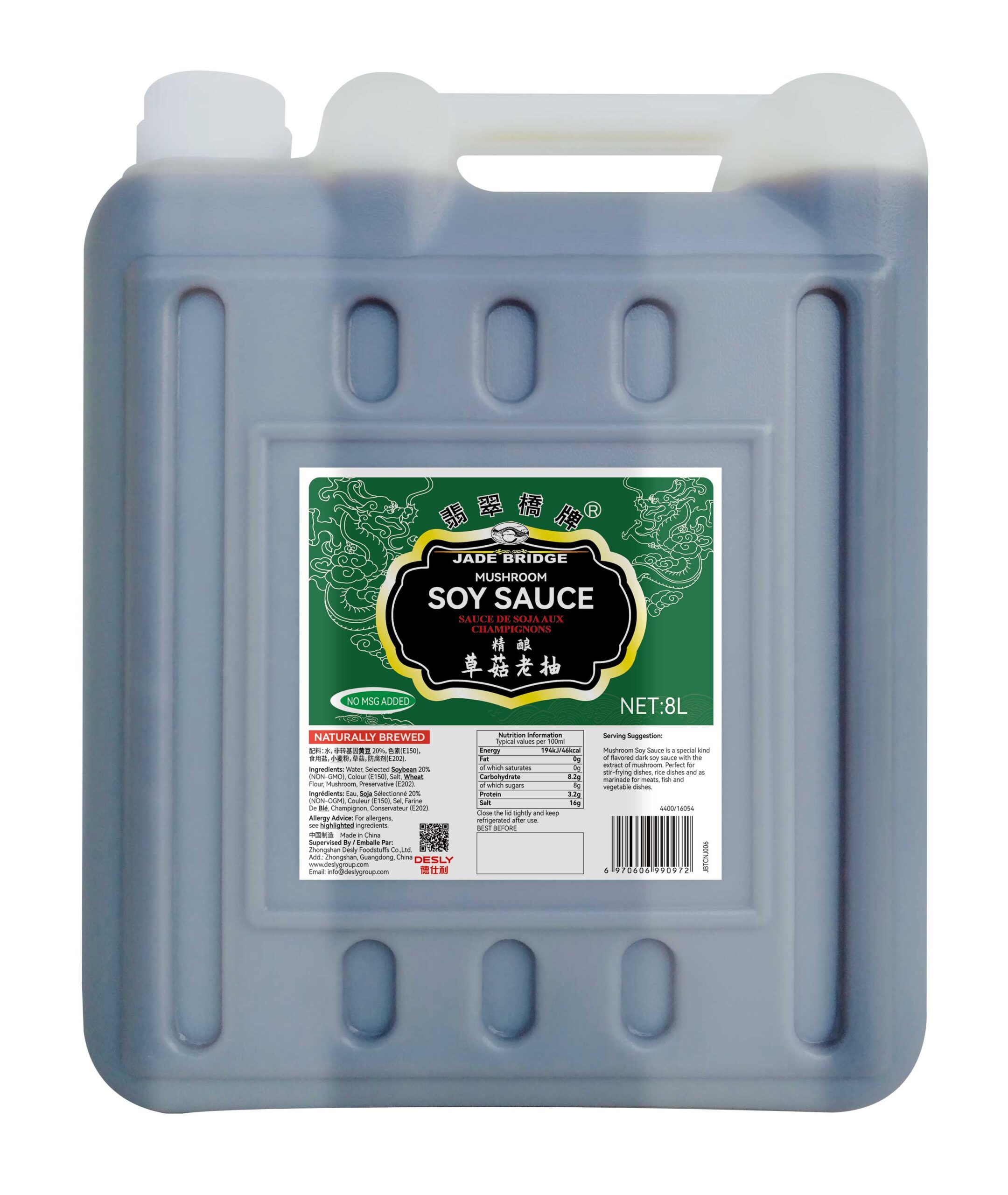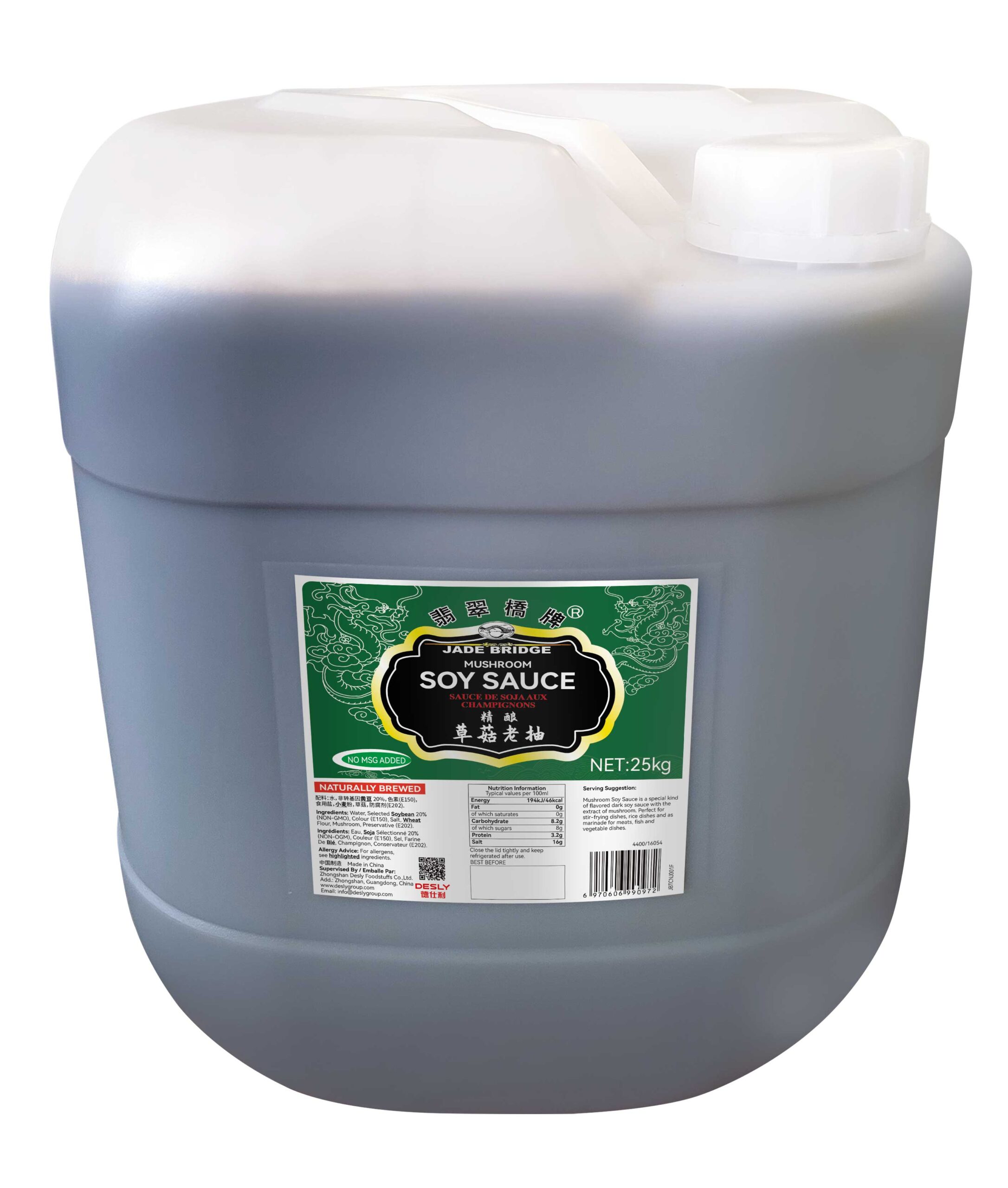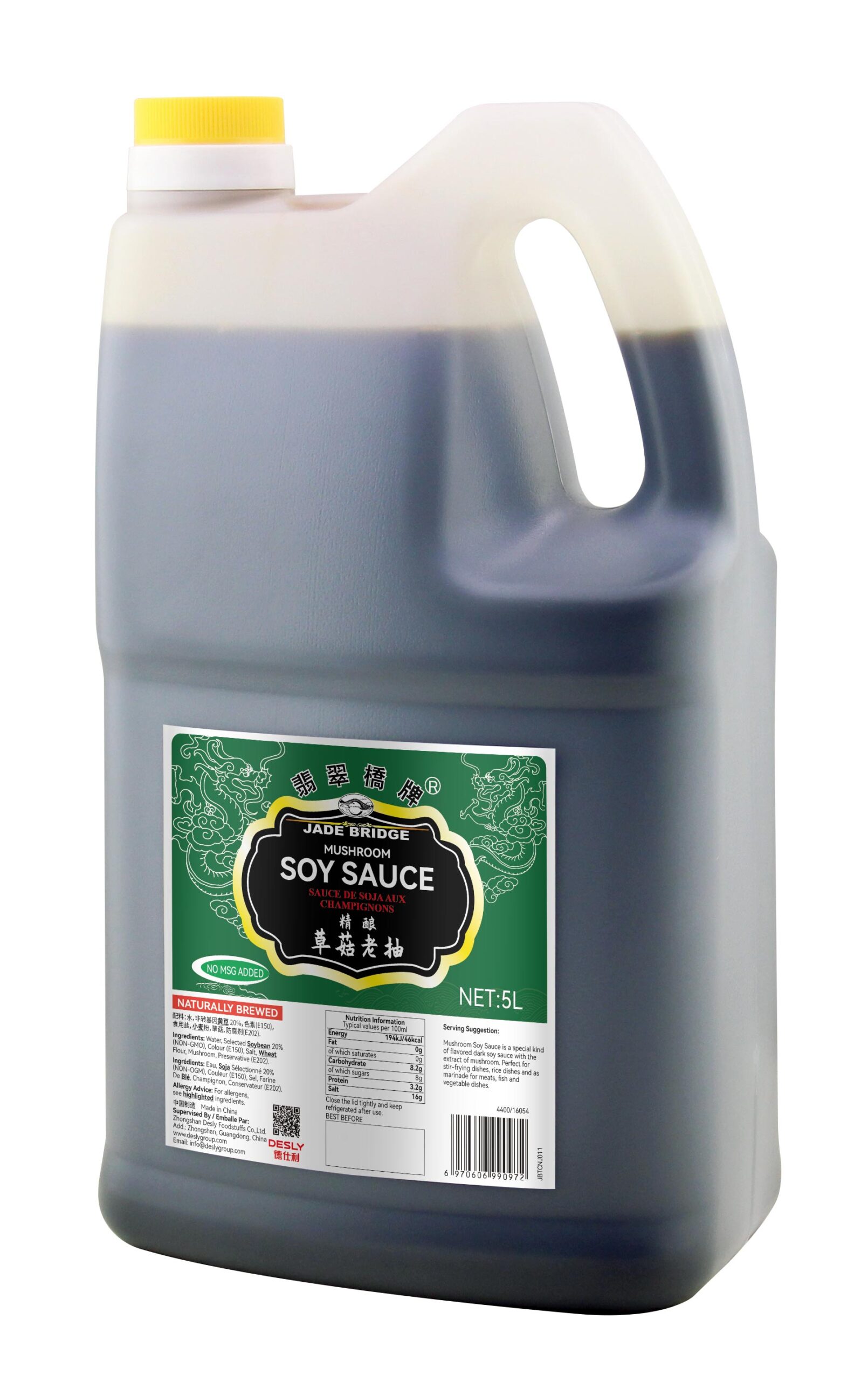 Jade Bridge Mushroom Dark Soy Sauce is made from premium quality soybeans. Its flavorful soy taste and rich color will significantly enhance the taste and appearance of any dish.