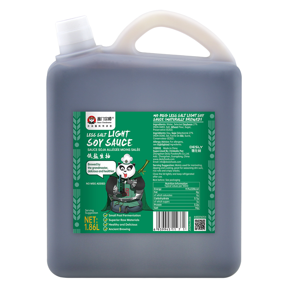 Low Salt Light Soy Sauce has 25% less sodium than our Premium Umami Light Soy Sauce.Superior Light Soy Sauce maintains the distinctive fragrance, aroma, delicious taste, and rich nutrition of soy beans.No wonder that our soy sauce is an essential in every Chinese kitchen.
